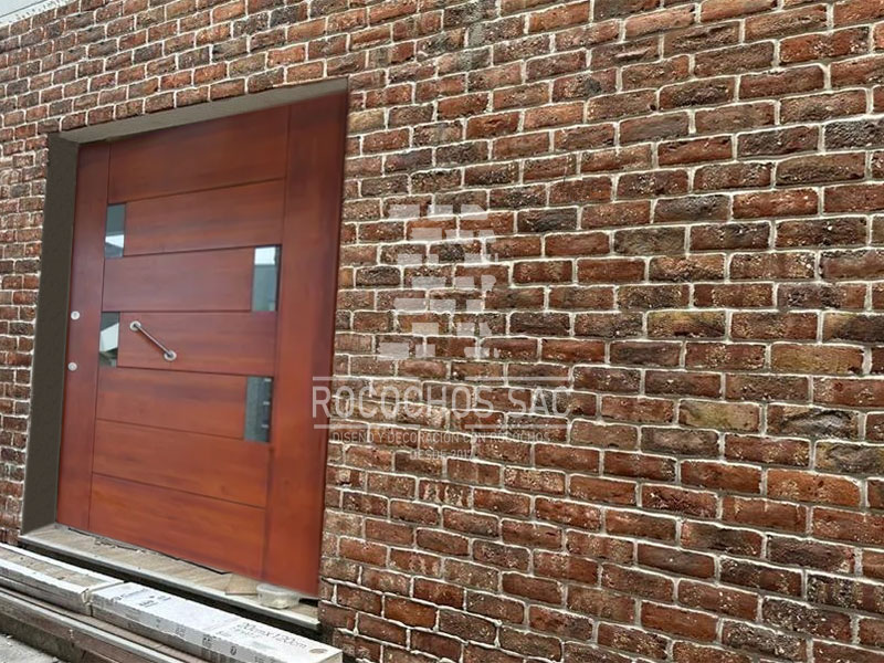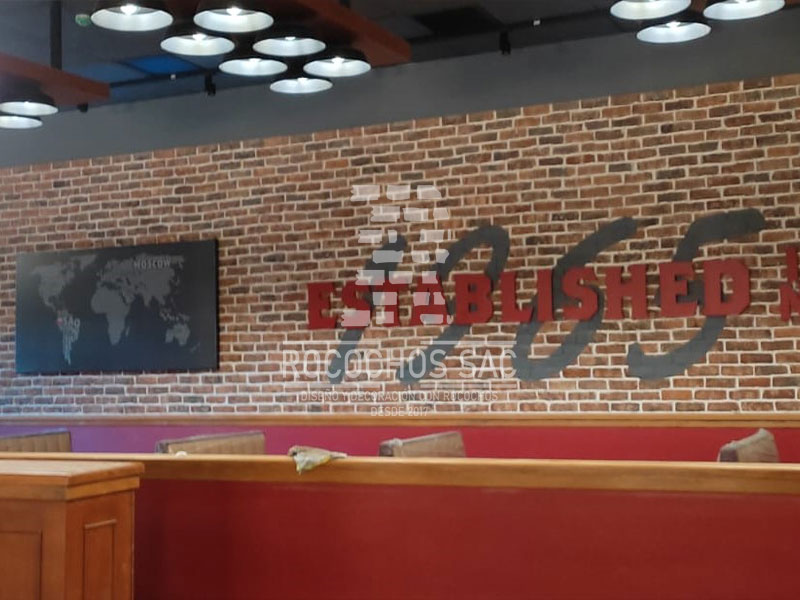 Aquí algunos de nuestros trabajos realizados en diversas partes del país con Ladrillo rococho modelo escarche 7x22x1.7cm. Textura rustica. Color: Rojos, negros, vetas blancas, naranjas. Bordes irregulares. Instalacion con o sin fragua. En ambientes interiores, exteriores, comerciales y edificios.