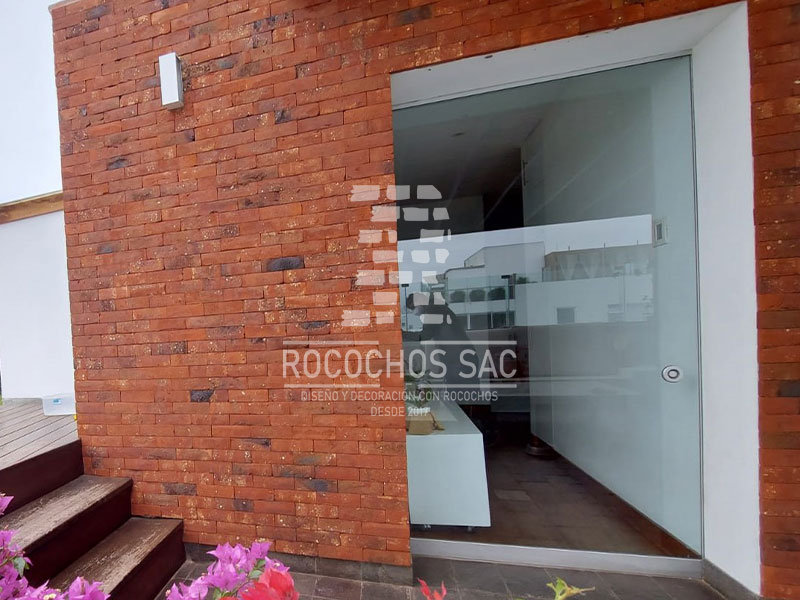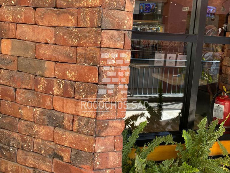 Aquí algunos de nuestros trabajos realizados en diversas partes del país con Ladrillo rococho modelo fosil medidas 6x20x1.7cm. Textura Rustica. Color: Rojos, negros, vetas blancas, naranjas. Bordes perfilados.Instalacion con o sin fragua. En ambientes interiores, exteriores, comerciales y edificios.
