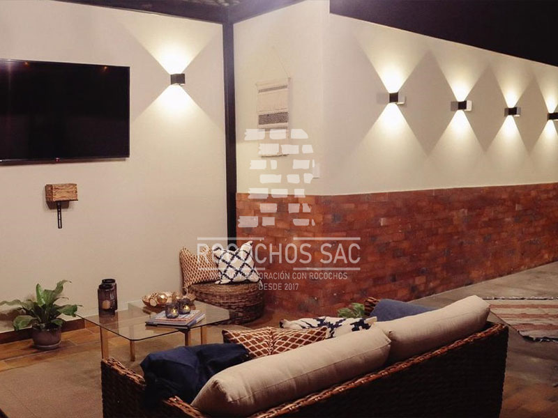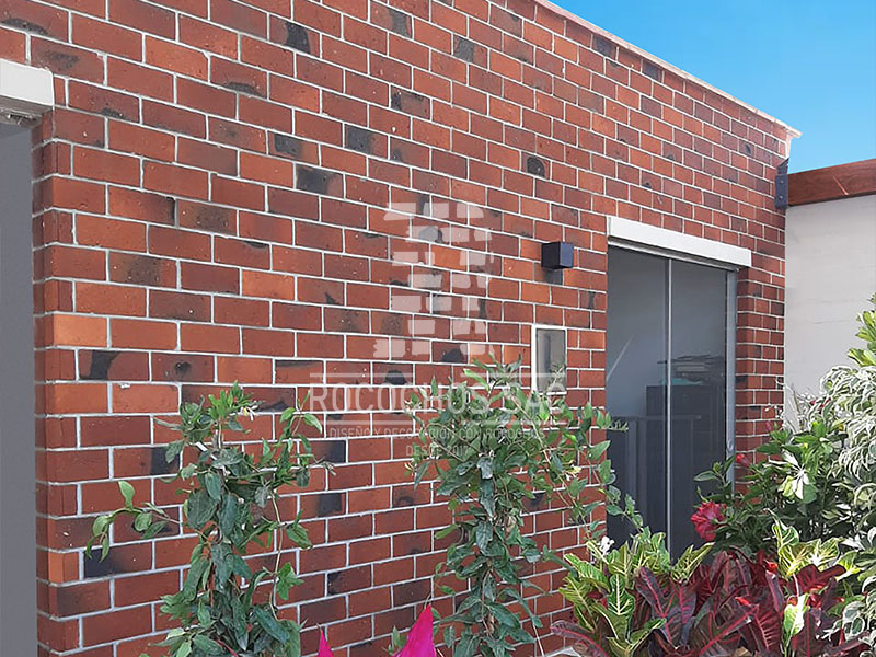Aquí algunos de nuestros trabajos realizados en diversas partes del país con Ladrillo rococho modelo Verano medidas 8x20x1.5cm. Textura lisa. Color: Rojos, negros, vetas blancas. Bordes perfilados. Instalación con o sin fragua a elección del cliente. En ambientes interiores, exteriores, comerciales y edificios.